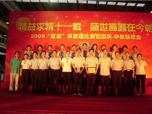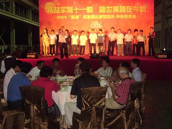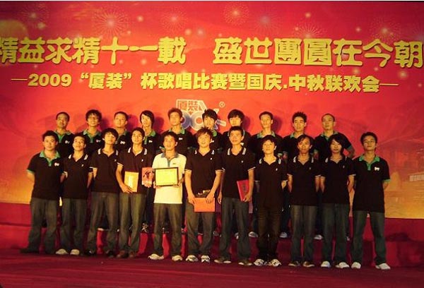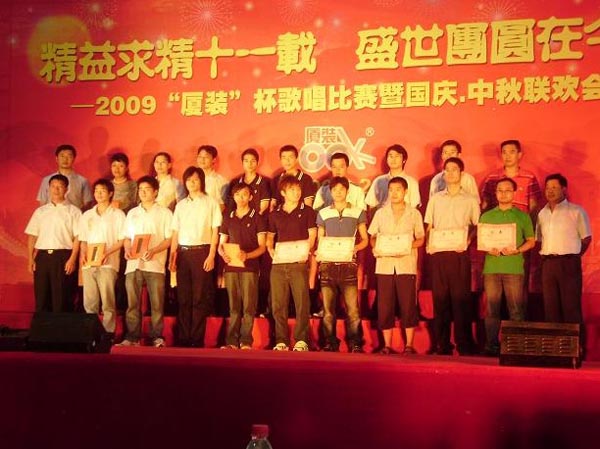 為喜迎“國慶·中秋”雙節(jié)的到來,慶祝廈裝公司成立11周年,廈裝公司于2009年9月29日舉行了規(guī)模盛大的“國慶·中秋”大聯(lián)歡活動(dòng)。此次活動(dòng)包括“歌唱祖國”歌唱比賽、頒獎(jiǎng)儀式、文藝表演、中秋晚宴、中秋博餅等幾個(gè)環(huán)節(jié)。