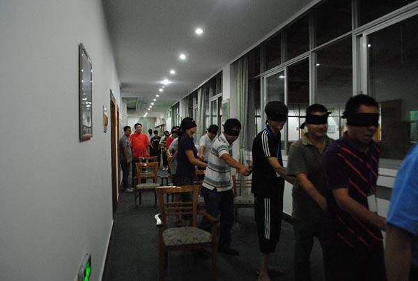 黑暗中學(xué)員手拉手,團結(jié)互助向前走