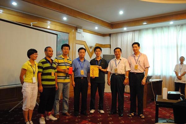 “廈裝”公司傅清良總經(jīng)理(左四)給活動優(yōu)勝隊頒獎